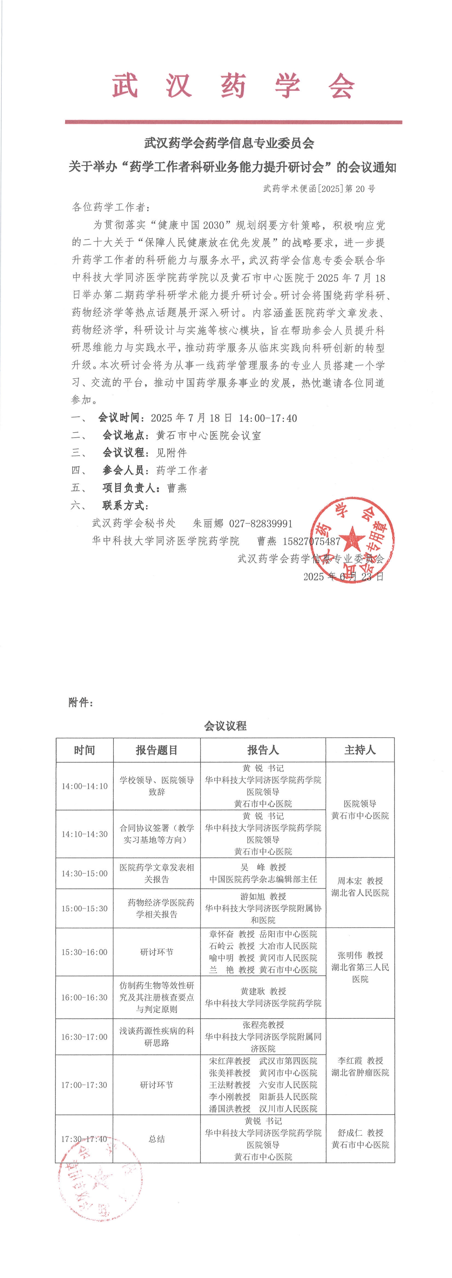 武汉药学会药学信息专业委员会关于举办“药学工作者科研业务能力提升研讨会”的会议通知