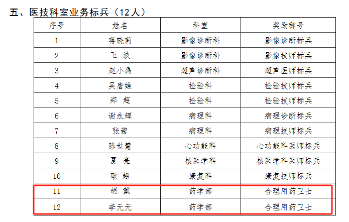 值此世界药师日之际,为表彰先进、树立榜样,武汉市中心医院组织了“药师风采展示暨业务标兵评选”活动,评选出了表现突出的业务标兵,临床药师李元元、胡戴因在促进临床合理用药方面做出的显著贡献,被授予“合理用药卫士”称号。