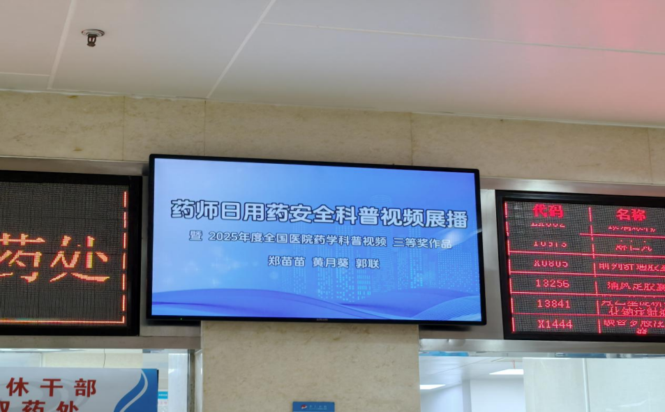 武汉市普仁医院药学部在门诊大厅的药房窗口循环播放自制的药师日用药安全科普视频《初夏防治感冒,切记避开这些坑》,进一步提高公众安全用药意识。