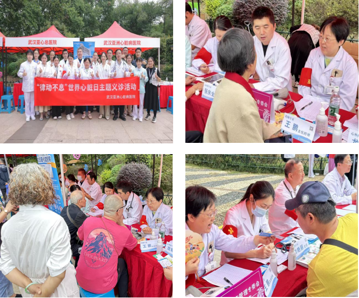 武汉市亚心医院药学部联合医务办、护理部于2025年9月27日在解放公园开展大型义诊活动。义诊以世界心脏日“律动不息”为主题,对心血管常见疾病及用药问题进行咨询。药学部王鹏主任药师与临床医护一道为患者耐心讲解心血管疾病用药的相关知识,纠正患者不合理用药误区,对患者进行用药指导,解答患者的用药问题。
