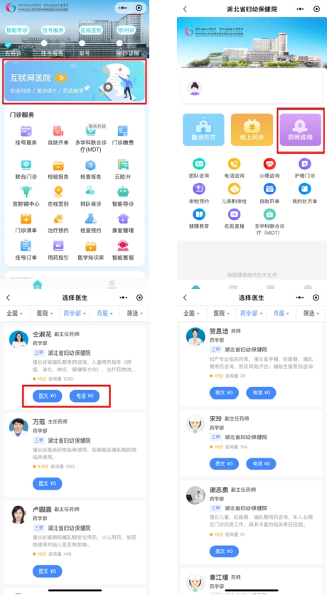 (1)湖北省妇幼保健院药学部——互联网免费用药咨询服务