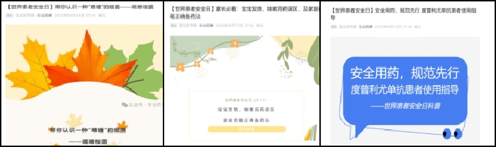 围绕世界患者安全日“安全护理每个新生儿和儿童”主题,亚心总院药学部在“车谷药事”公众号(2025年9月16日-19日)连续发布3篇专题科普推文,内容兼具专业性与实用性:9月16日发布带你认识一种“难缠”的细菌——艰难梭菌》:科普艰难梭菌的危害、传播途径及预防措施,帮助公众了解医院感染防控与用药安全的关联;9月17日发布家长必看:宝宝发烧、咳嗽用药误区,及家庭药箱正确备药法》:针对儿童常见症状,系统梳理用药误区(如发烧即用抗生素、咳嗽盲目镇咳等),并提供家庭药箱科学备药方案;9月19发布安全用药,规范先行——度普利尤单抗患者使用指导》:聚焦特定药物使用安全,为度普利尤单抗用药患者提供规范使用流程、注意事项及不良反应处理建议,助力特殊人群用药安全。