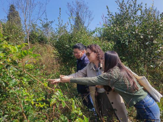 方建国教授一行与当地农户深入交流,详细了解了当地藤茶的种质资源、生境、栽培模式、田间管理、采收和产地加工等情况,收集了藤茶样品进行质量评价,对藤茶种植生产、藤茶药材各指标和影响因素进行全面检测和深入分析,制定藤茶质量提升计划,对当地藤茶种植及产地加工进行指导。以期为推动藤茶药材生产标准化、规模化、集约化,实现藤茶“提质增效”,为藤茶产业高质量发展奠定基础,助力湖北省恩施州来凤县乡村振兴。